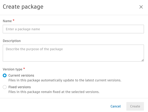 • Fixed versions: Select this option if you want all the files in the package to remain fixed at their selected versions.