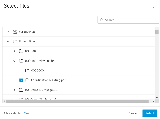 3. Select files from the file picker. You can also search for files if necessary.