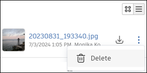 in the bottom right corner of the attachment that you want to delete, and then click Delete.
