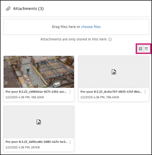 In the Attachments section, you can then view your attachments in a thumbnail or list view by selecting each icon respectively. The attachments will only be viewable here.