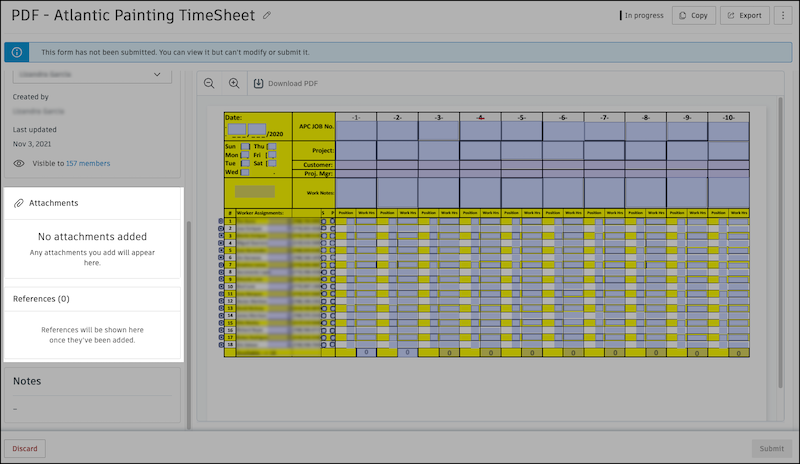Form attachments are files, photos, and videos that you want to associate only with the specific form they are attached to. They are not visible across other ACC tools. Therefore, only project members with the permission to view a form can view its attachments.
