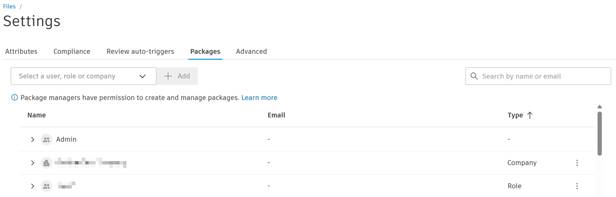 Project administrators can grant package manager permissions to members either individually or through roles, or companies. Package managers can view and create packages along with many package actions detailed in the Package Permissions help topic.