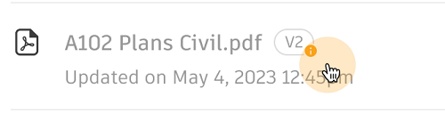 You can only download the current versions of files. This means if a previous version is added to a package, you can't download and view the file. An orange icon on the version number indicates that the file version added to the package is not the current version and therefore can't be downloaded.