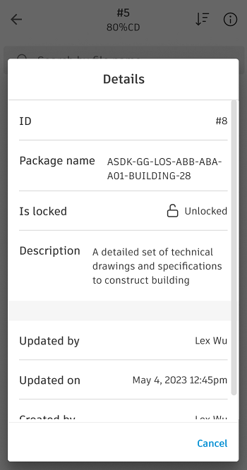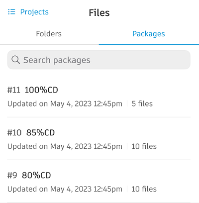 Once packages are created on web, you can view them on mobile and download the current file versions in a package.