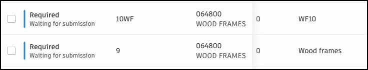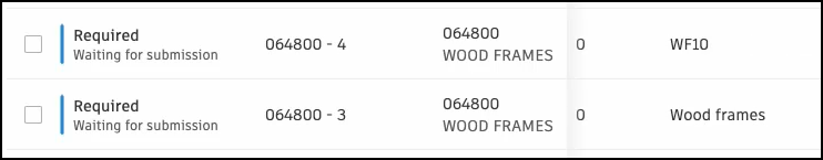 See images above for reference. Changing numbering method prompts re-calculation of the numbers. Items numbered 9 and 10WF change to 064800-3 and 064800-4 as they are items number 3 and 4 under WOOD FRAMES Spec Section.