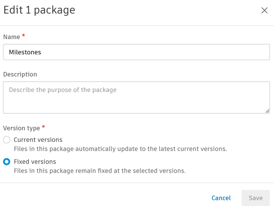 Project administrators can edit the Name, Description, and package Version type of any unlocked package. Package managers can only edit a package which they've created and which is unlocked.