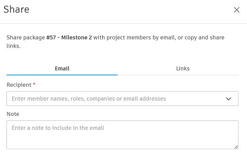 - Email: Click Recipients and select members, roles, or companies and click Save. Enter a note if necessary. Click Send.