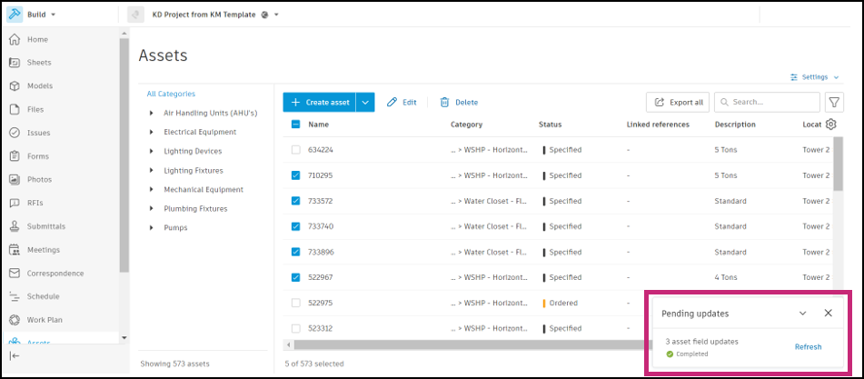 You will see a Pending updates box that shows how many asset fields have been updated.