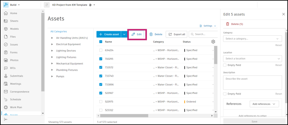 Once you have selected your assets, click edit and the Edit assets panel will show on the right side of the window.