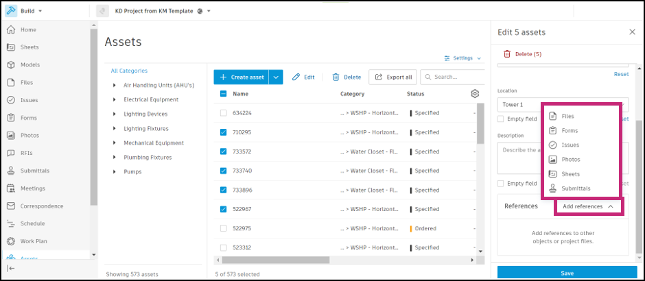 To add references to other project items, click Add references to open the drop-down menu. Choose which reference you would like to add.