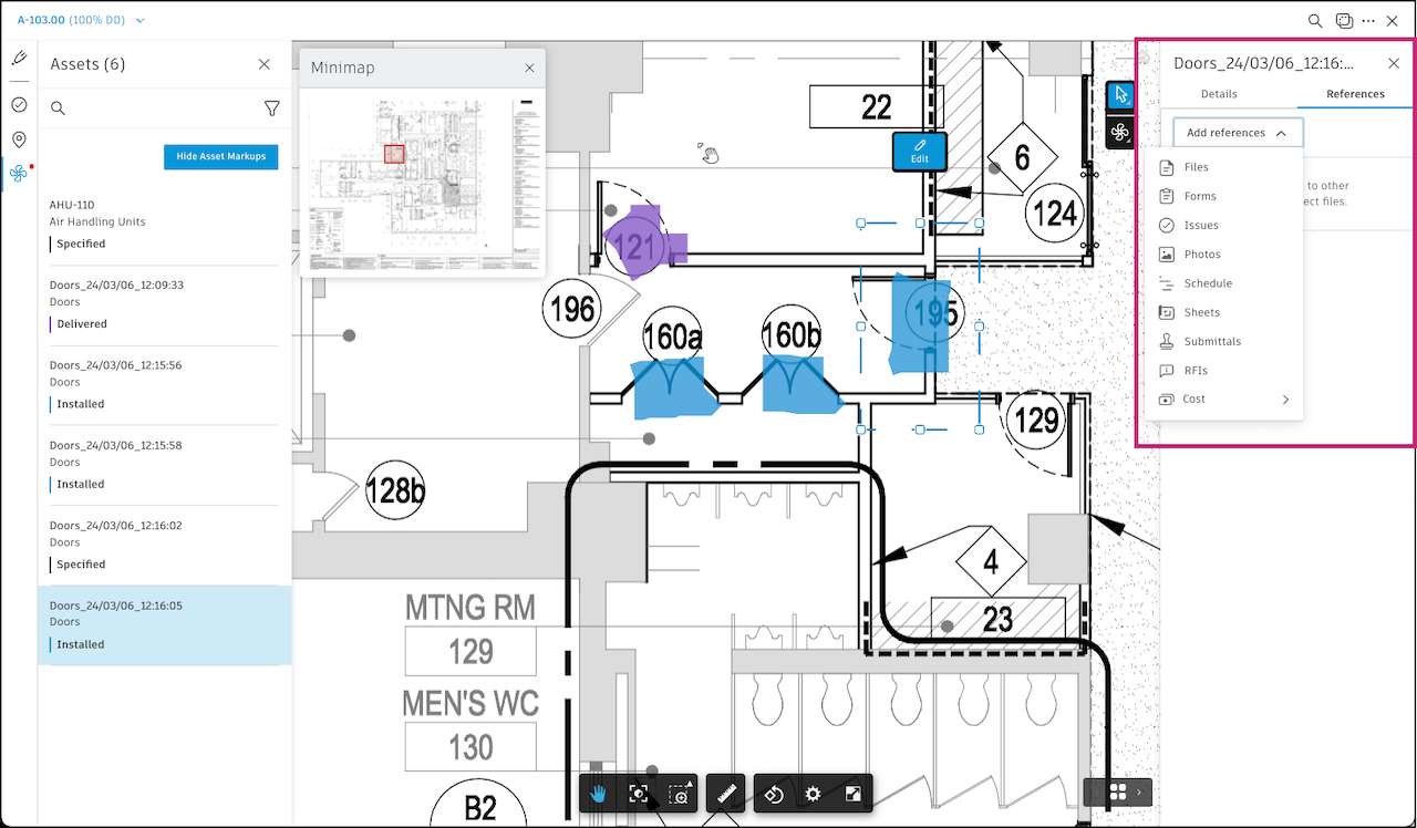 Add photos, videos, forms, issues, submittals, and other references to an asset to connect all relevant information to an asset.