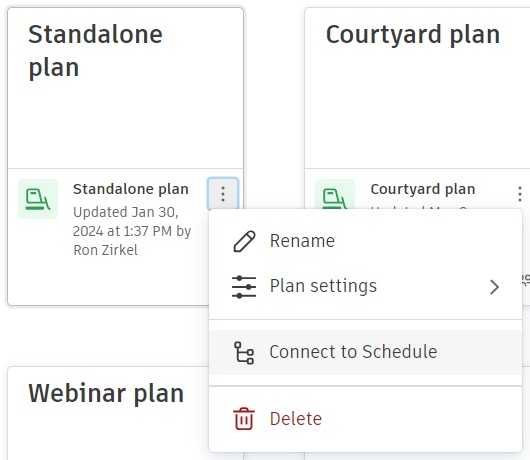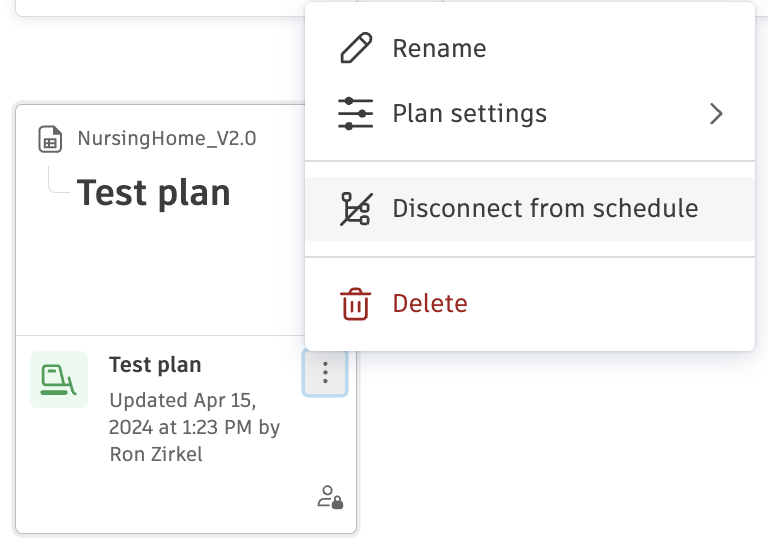 After connecting a standalone plan to a schedule, it is possible to disconnect it if needed. However, connecting a plan to a schedule may result in changes to the plan's permissions.