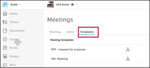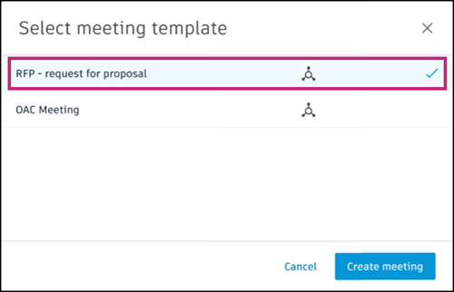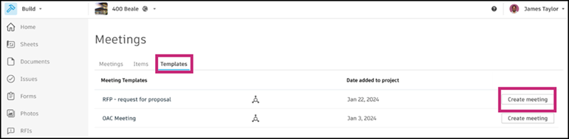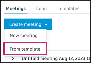 You can create a meeting from a template in the Meetings tab or in the Templates tab.