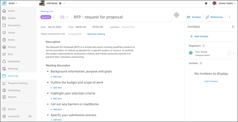 Now the meeting you created has the structure of the selected template, but you can freely edit it, change the topics order and content, add new topics, items, references, invitees etc.