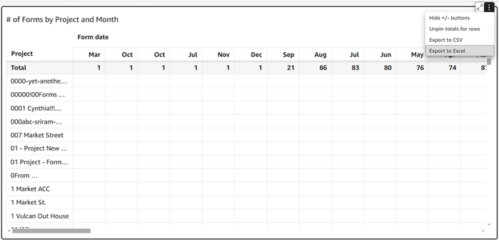- A Microsoft Excel workbook file (.xslx), available for pivot tables and table charts.