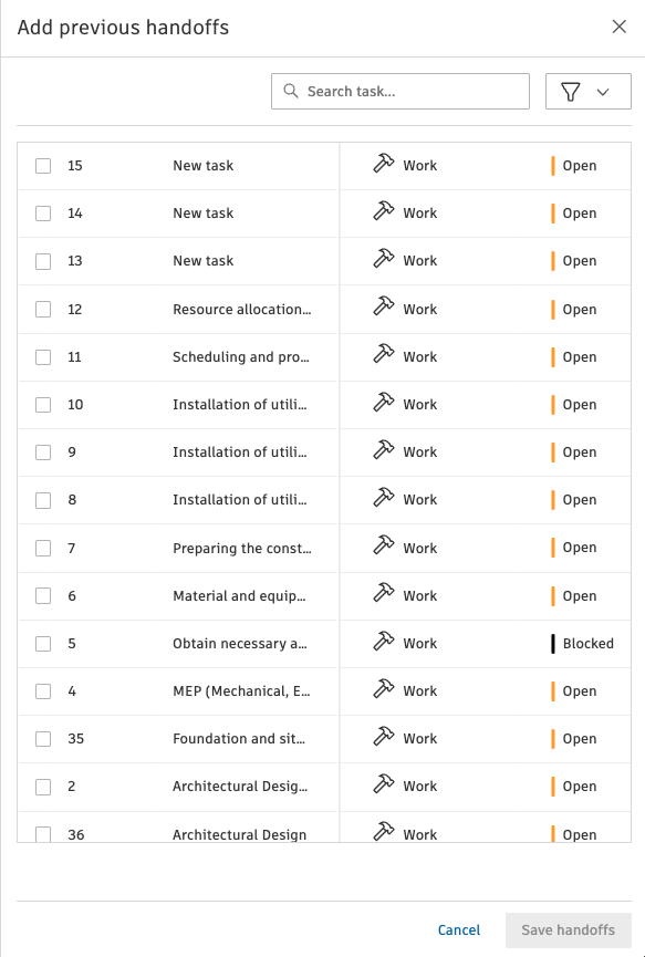 - Use these IDs in the Previous handoffs IDs column for the dependent tasks, separating multiple IDs with commas