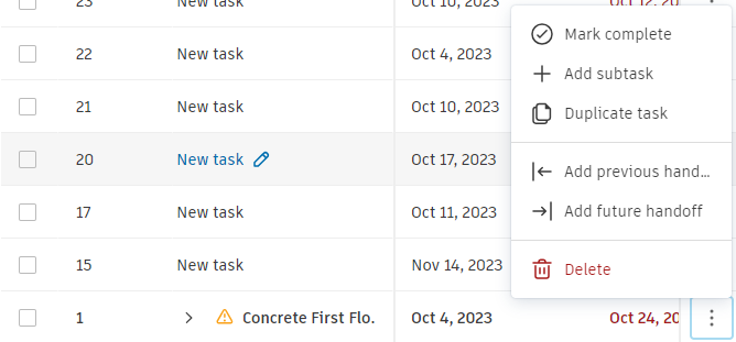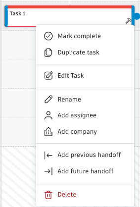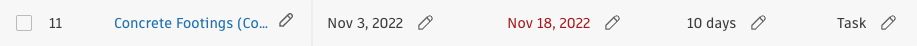 - Start/End Dates - Edit the date range. Dates will be adjusted based on task handoffs and restrictions. The red color indicates overdue dates.