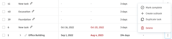 - Duplicate - Make copies of selected tasks within the plan. Tasks can be duplicated with or without subtasks.