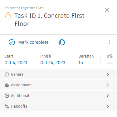 - Duration - View and edit the task duration.