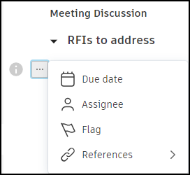 Click the More menu to assign meeting items to the attendee responsible for the follow-up work.