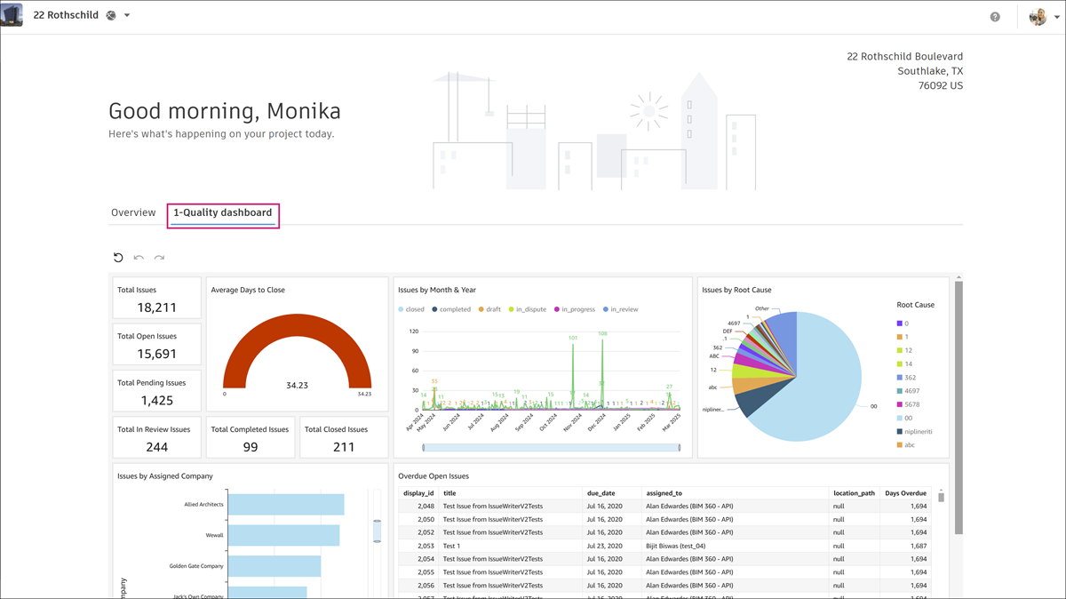 Project Home is where you can get a quick overview of what's happening on your Autodesk® Build project.