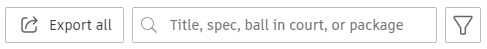 The search bar is a simple and quick way to find submittal items. Search items by title, spec section, ID, number, or ball in court. Search packages by title or spec section.