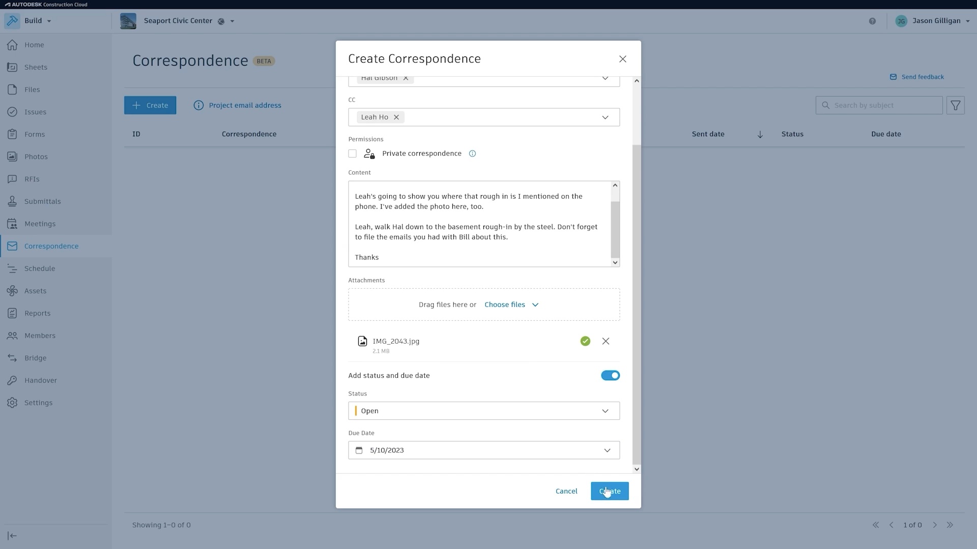 - Save correspondence attachments in the Files tool