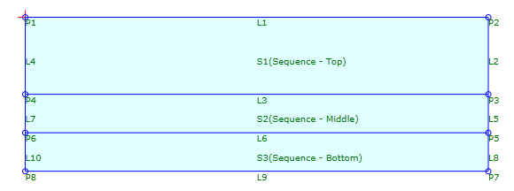In this example, the subassembly is composed of three sequences that form top, middle, and bottom layers. The Sequence - Top layer was created first, and then the