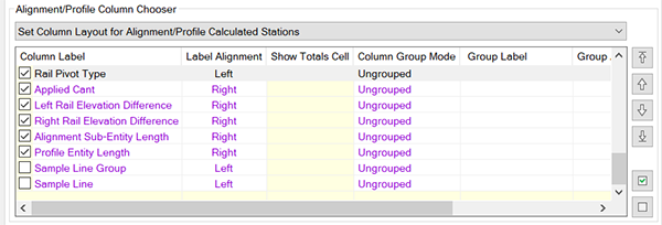 - Set Column Layout for Calculated Stations in Rail Alignments/Profiles