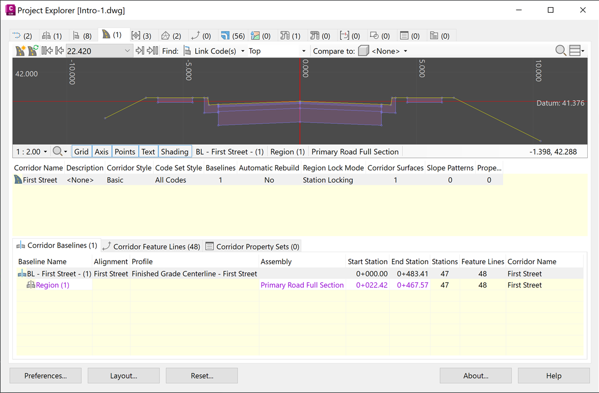 - General: For every Profile and Section View in the Project Explorer window, the scale factor and visibility of labels, the grid, and other content items can be controlled.