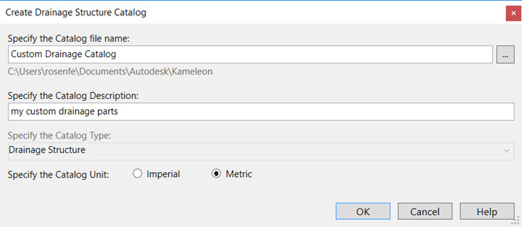 5. Specify a file name, type, description, and units of measurement, then click OK.