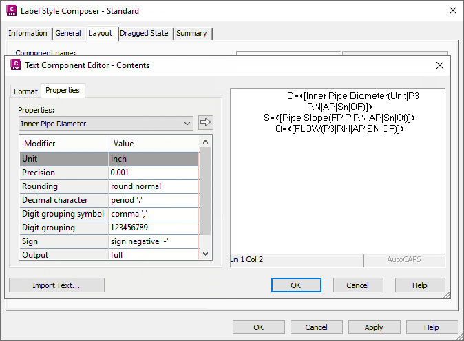 Figure 12: Use the text component editor to display flow capacity (Q)