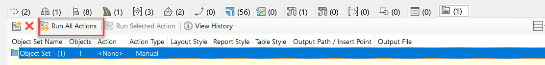 - Click the Run All Actions button. This will update both reports with the latest design changes that you applied to the pipe network and corridor.
