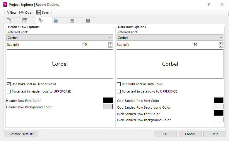 On the Font Options tab, set the preferred font to Corbel and the font size to 10pt.