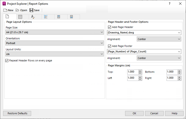- On the Page Options tab, set the page size to A4, and the page orientation to Portrait.