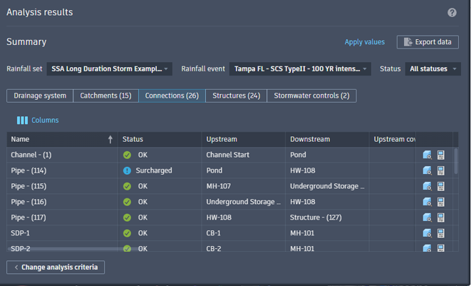 When a drainage engineer prepares to analyze a system, the analysis can be initiated directly within Civil 3D. This allows for the utilization of various rainfall and runoff methods and facilitates the execution of multiple storm event simulations. Upon completion of the analysis, engineers can validate results, including any warnings or errors, before applying them to the drainage components within the drawing and exporting a comprehensive analysis report.