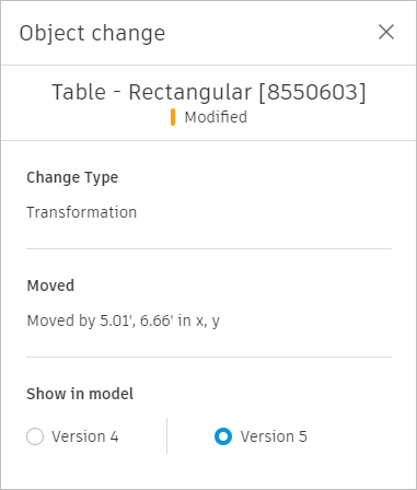 You can view more detailed information about each change in the list, for example if there has been a change in shape or size of an object.