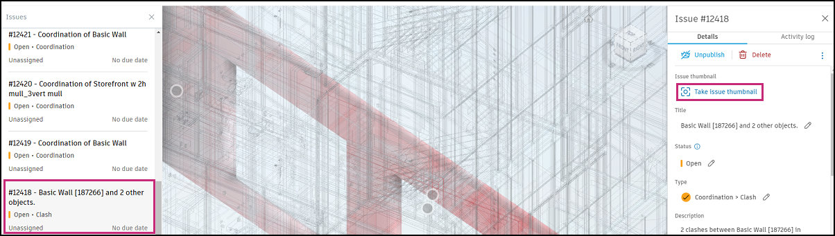 Important: The issue thumbnail feature is not supported in Navisworks.