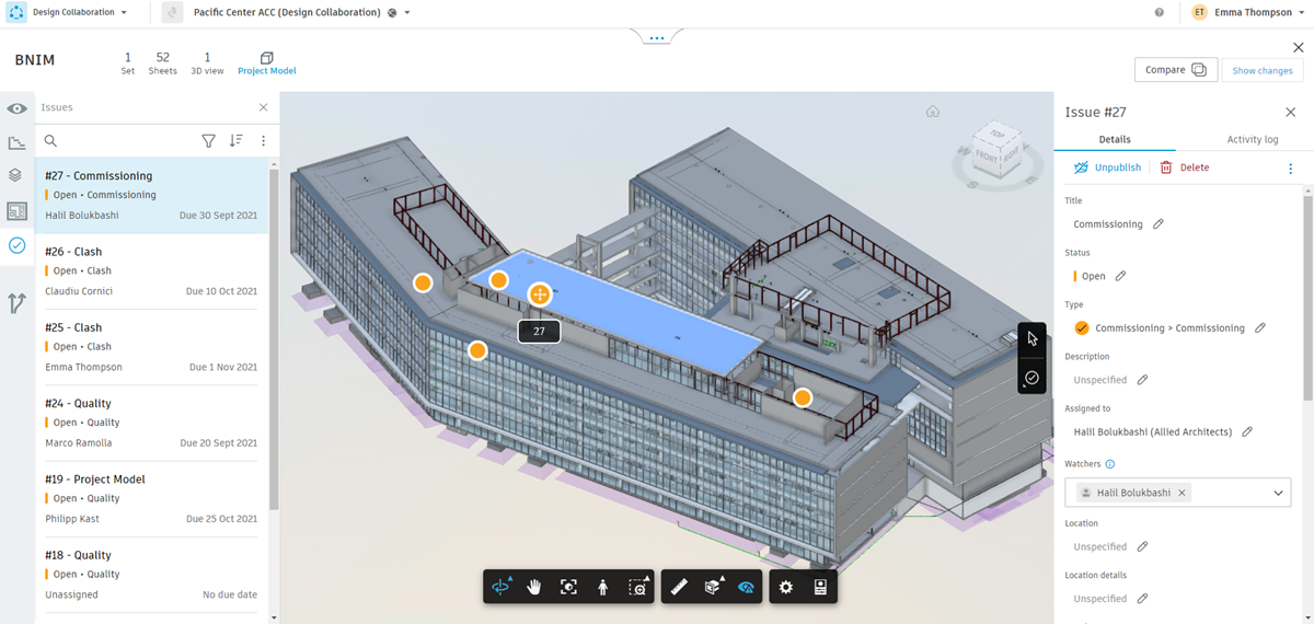 Click the relevant place on the model to place the issue pushpin. This will be published automatically.