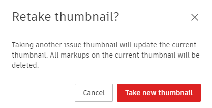 To update markups on an issue thumbnail, you need to retake the thumbnail. This will reset the thumbnail to the original perspective at time of issue creation, and also discard all markups previously added to the thumbnail.