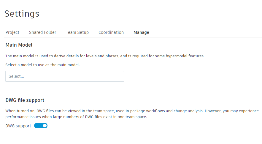 A2. The performance of Design Collaboration can be affected by having large numbers of DWG files in your team folder. To improve performance, keep only DWGs that are relevant to the design in the team folder. Store non-design DWGs, for example deliverables, in a separate folder outside the team folder. In addition, you can turn off support for DWG files for a project.