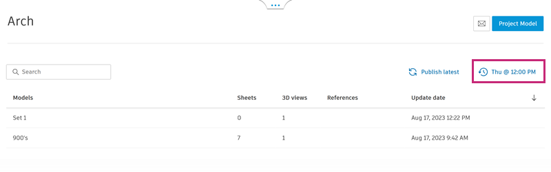 Project administrators, or project members with Manage permissions, can schedule a regular, automated publish of a team's work using the Schedule publish option in the Settings or Home tool. This allows you to share the latest work from a team without the need to manually publish cloud workshared models. Only models with changes since the last publish operation are included in scheduled publish operations.