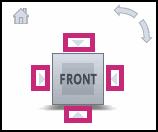 The left roll arrow rotates the view 90 degrees counterclockwise, while the right roll arrow rotates the view 90 degrees clockwise.