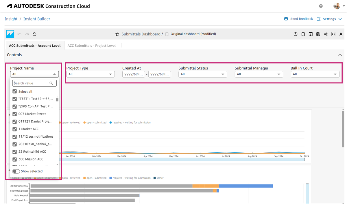 Tip: Toggle on/off the Show selected option at the bottom of the drop-down list to display all selected filters.Hover over the drop-down name to display the More menu