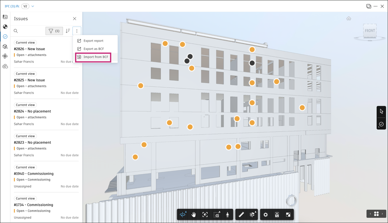 2. Click the More menu at the top right of the Issues list and click Import from BCF.