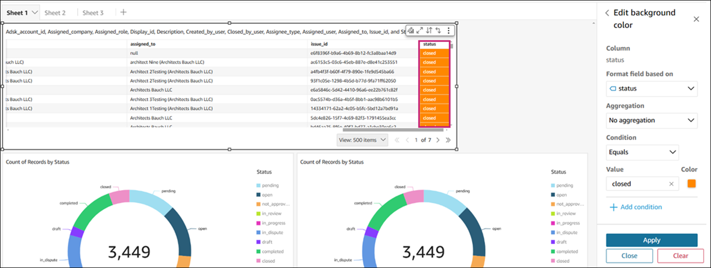 - Sheets: Use to add, duplicate, and rename sheets, add titles, descriptions, and access and configure layout settings.