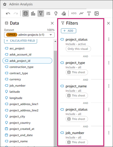Use the Filter icon in the toolbar at the top left of the page to narrow down the data in your analysis.