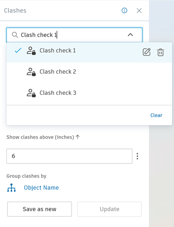 Note: Clash checks can only be updated by the creator or project administrators.Click Save as New to create a new clash check.