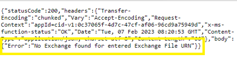 You can get details about why the Data Exchange flow failed by providing the Data Exchange URN and selecting the OUTPUT option. The details of the flow along with the common error messages are displayed in a browser.