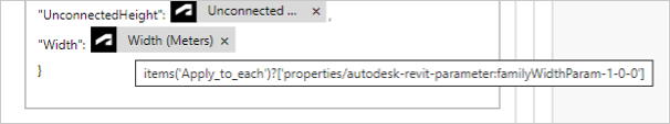 - Dynamic content properties may have duplicate entries for common parameters such as Length, Height, and Width. You can select from this list of duplicate elements and hover your mouse on the entry to see the schema name of the parameter as shown in the following images. Refer to the FAQ section for details on the most frequently used parameters and their schema name for commonly referred categories.